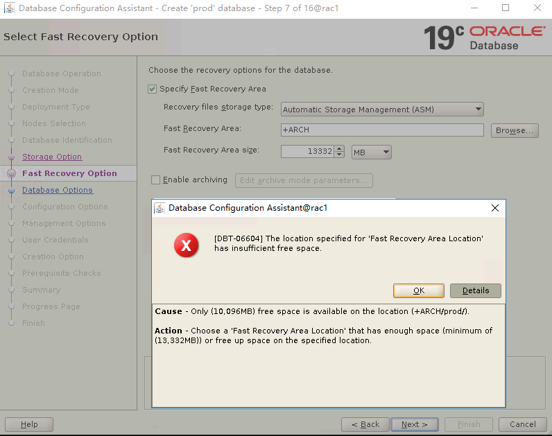 错误的配置,这么选择的话后边dbca建库的时候会报错,建不起库