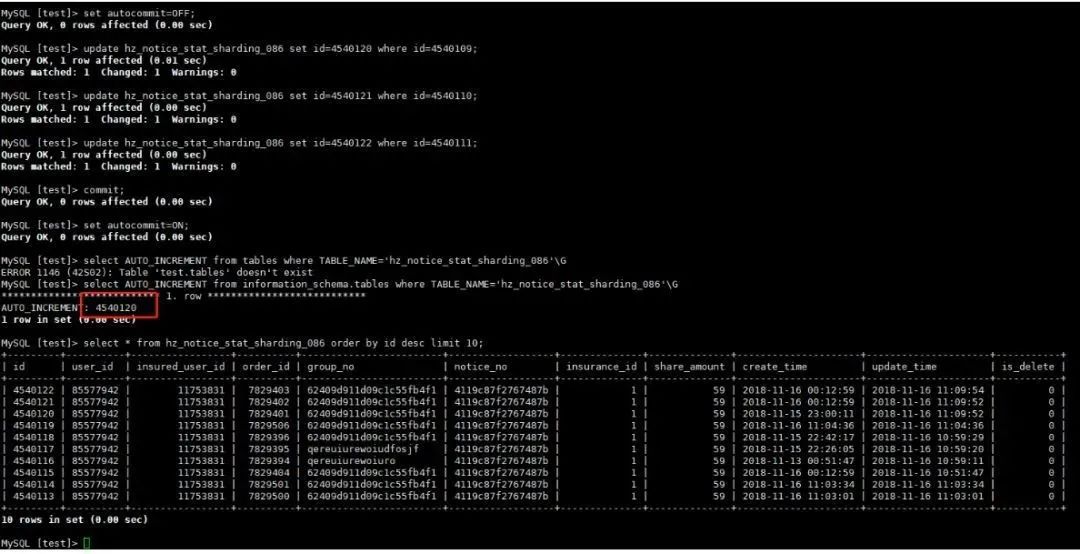 以其中一个表为例,迁移前通过“show create table” 命令查看的auto increment id为1758609, 迁移后变成了1758598,实际对迁移生成的新表的自增列用max求最大值为1758609。