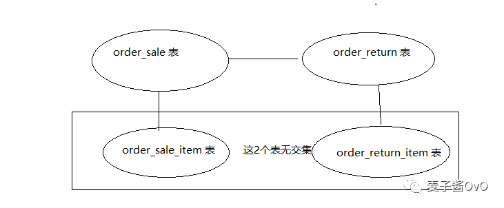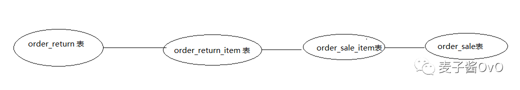 第二个sql售后表关联售后子项表,售后子项表关联订单子项表,订单子项表关联订单表,售后子项表关联订单子项表,订单子项表关联订单表,形成一条不分叉的直线,示意图如下: