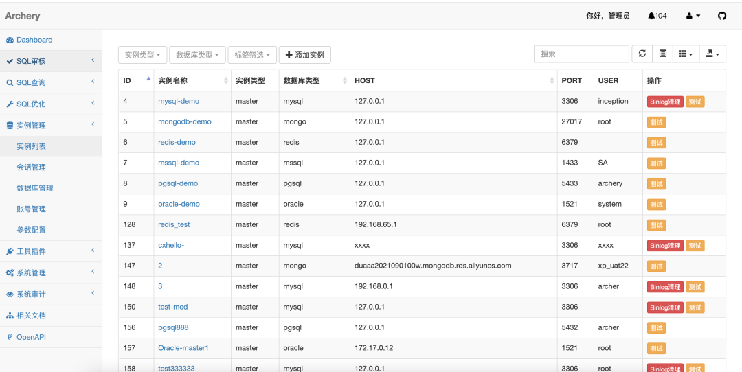 实例管理界面提供了对多种数据库实例的统一管理支持,管理员可以方便地监控和维护各个数据库实例的状态。
