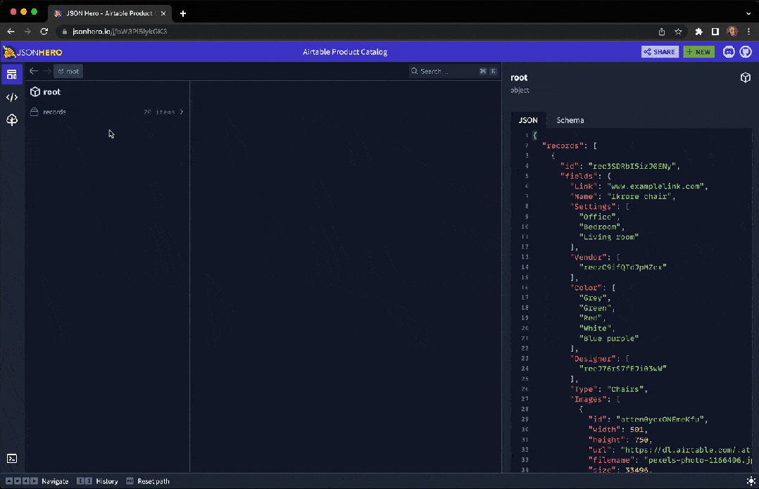 可直接访问 https://jsonhero.io 上传文件或粘贴 JSON 数据。