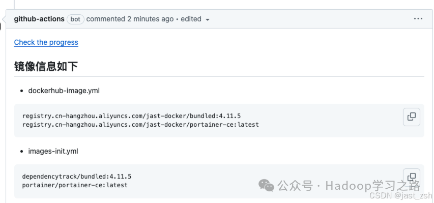 2. 稍等几分钟,刷新该issue,即可看到阿里云对象的镜像地址。
