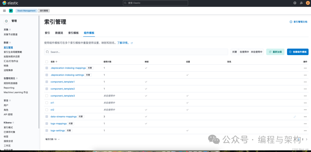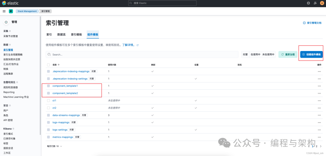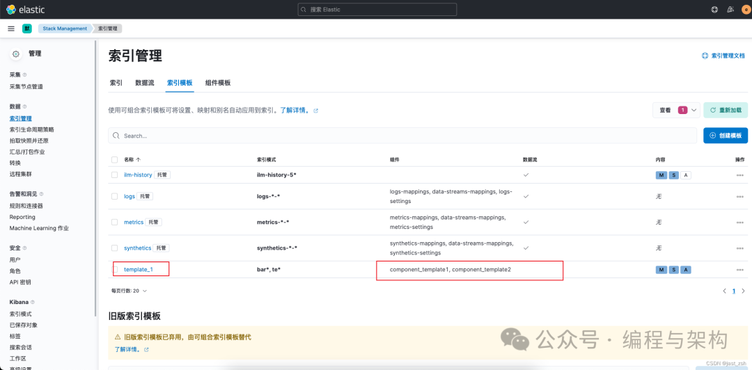 在索引模板中,可以看到,template_1 索引模板由component_template1, component_template2组成