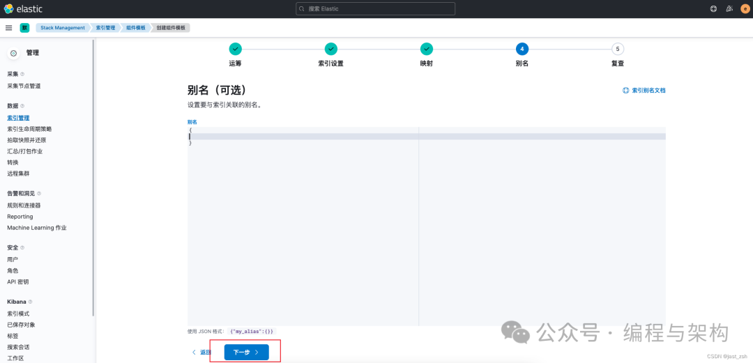 这个模板还将新建索引添加至了{index}-alias