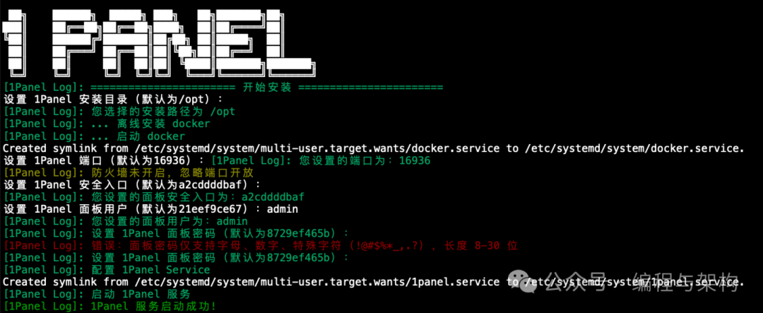 start 启动 1Panel 服务