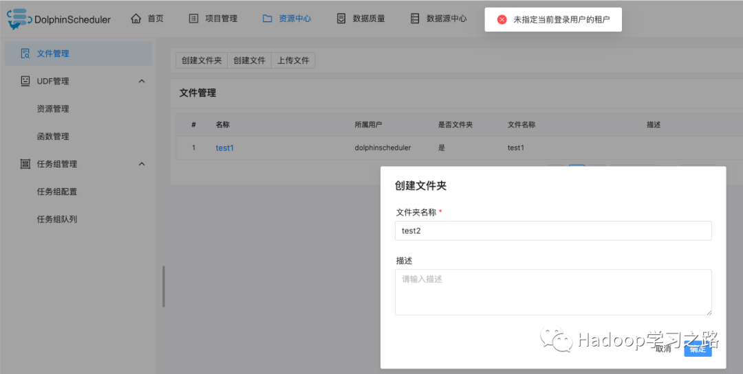 # 如果resource.storage.type=HDFS,则用户必须具有在HDFS根路径下创建目录的权限