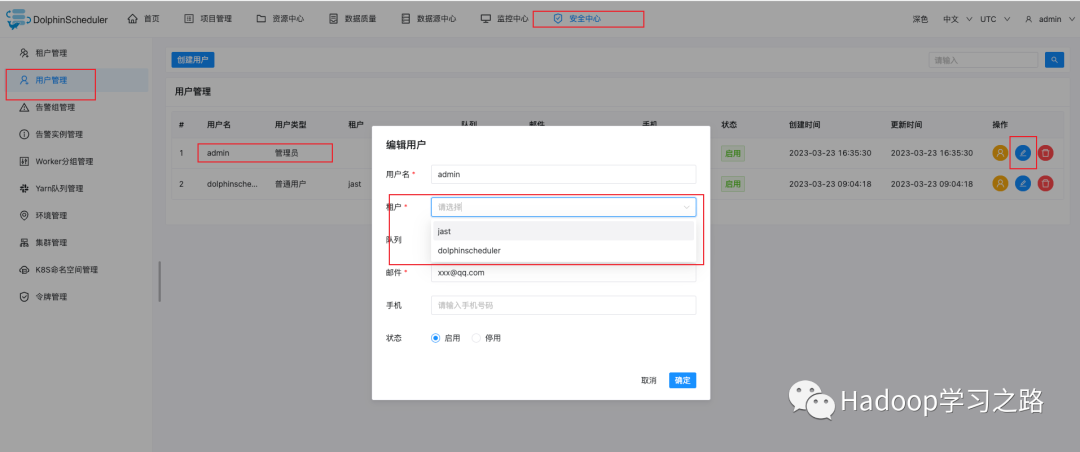 useradd dolphinscheduler