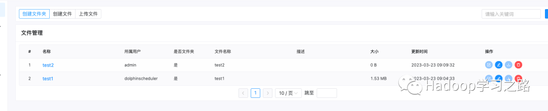 这些文件和目录我们可以直接在HDFS中查看,目录为我们之前配置的/dolphinscheduler