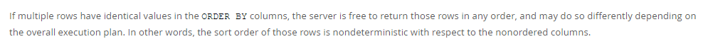 如果order by的字段有多个行都有相同的值,mysql是会随机的顺序返回查询结果的,具体依赖对应的执行计划。也就是说如果排序的列是无序的,那么排序的结果行的顺序也是不确定的。