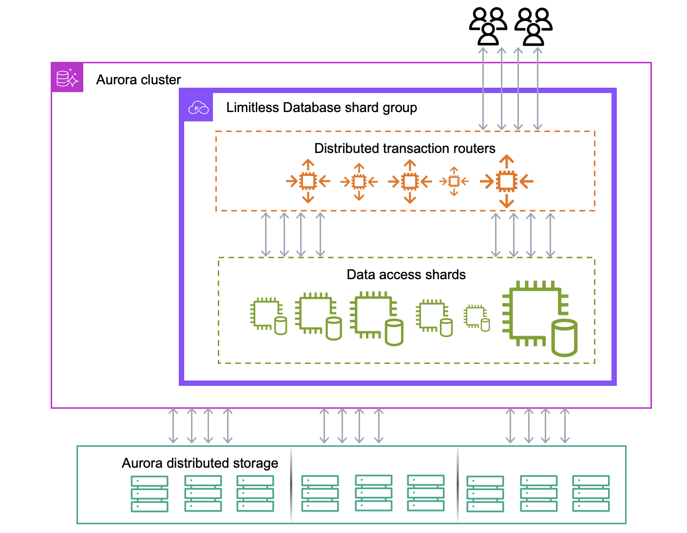当我们在 AWS re:Invent 2023 上预览 Aurora PostgreSQL Limitless Database 时,我解释说它使用由数据库分片组中的多个数据库节点组成的两层架构,要么是路由器,要么是分片,从而根据工作负载进行扩展。