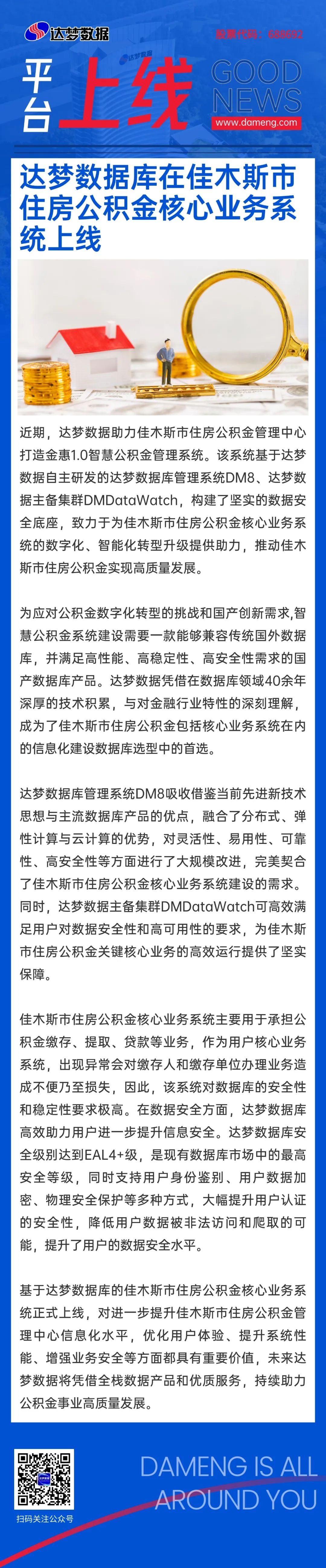 达梦数据库在佳木斯市住房公积金核心业务系统上线