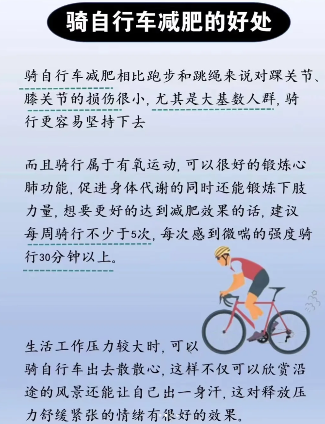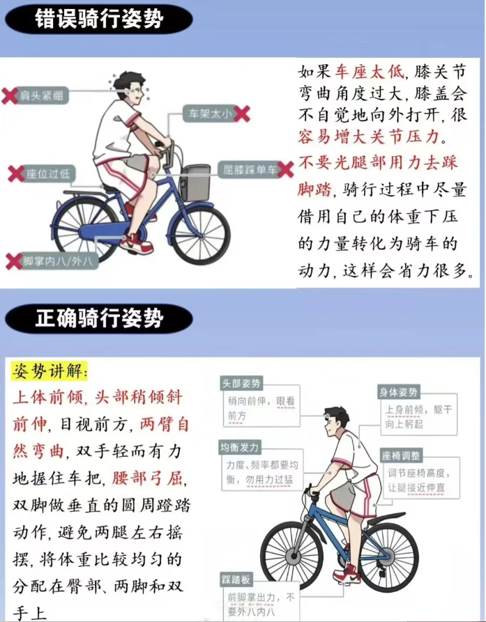 膝盖不好的朋友,骑车是项不错的运动,但前提是骑姿需要标准,无论是自己的车,还是共享单车,都需要调节到适合自己的高度,另外很多人关注的问题,骑自行车能不能减肥?可参考如下介绍,了解下原理。