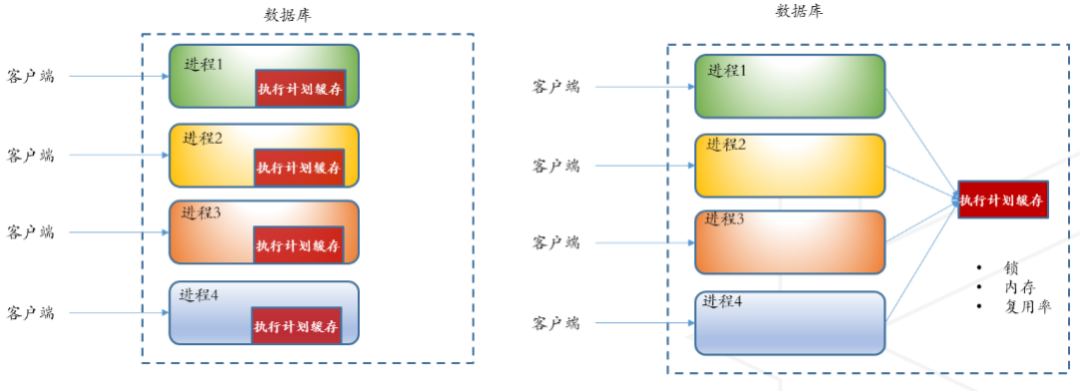 然而,本地执行计划缓存方案并非适用于任何场景。一方面,本地执行计划缓存将会占用过高的内存;另一方面如果用户不能按照参数化的格式发送SQL请求本地执行计划缓存的重用率不高。在有限的CPU和内存资源场景下,本地内存的执行计划缓存方案将会产生性能瓶颈,无法达到预期的性能优化目标。