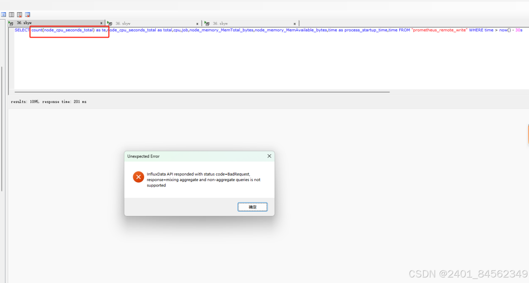 #经过本人测试。上面的sql查询的字段必须经过重命名,或者doris建表的字段必须和influxdb2的字段完全一致,不然transform 中进行转换的时候就会成为空值,这个我还没研究明白为什么,研究明白了在补上说明,doris的表字段类型也必须和influxdb2中查询的字段类型一致,不然数据存不到doris中。schema 重定义的事influxdb2查到的字段和类型