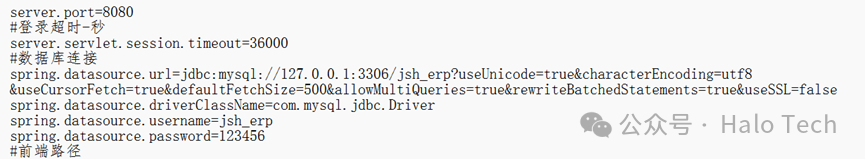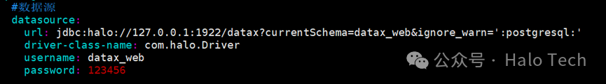 注意修改spring.datasource.url 的 ip 地址改为实际halo的ip地址,端口号、实例名如有变动也需要更改。