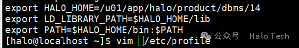 exportHALO_HOME=/u01/app/halo/product/dbms/14