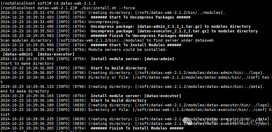 tar -zxvfdatax-web-2.1.2.tar.gzcd datax-web-2.1.2./bin/install.sh --force