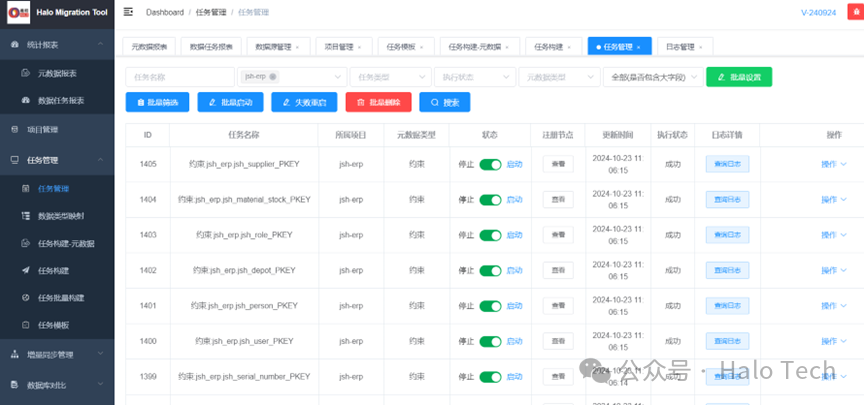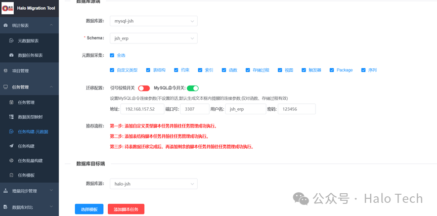 Halo Migration Tool为我们易景科技自研数据库迁移系统,可以稳定快速的进行元数据和数据迁移,并支持增量数据迁移功能。