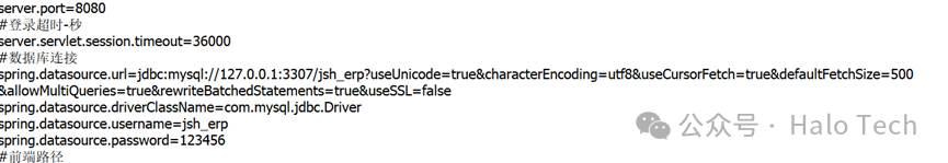 在halo库创建的用户名、密码、database都和生产环境一致,因为mysql和halo在同一台服务区,应用java包只需要修改下端口后即可。