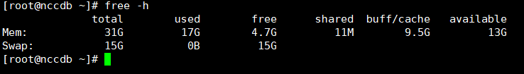 [root@nccdb ~]# free -h 内存使用17GB(使用正常).