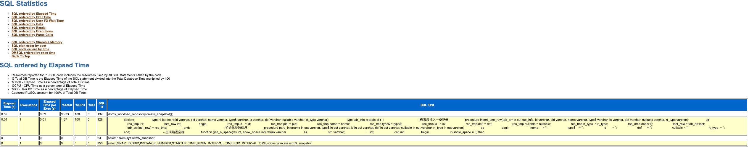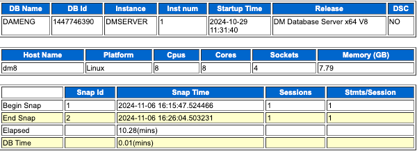 SQL> sys.awr_report_html(1,2,'/home/dmdba','dmawr_1_2.html');