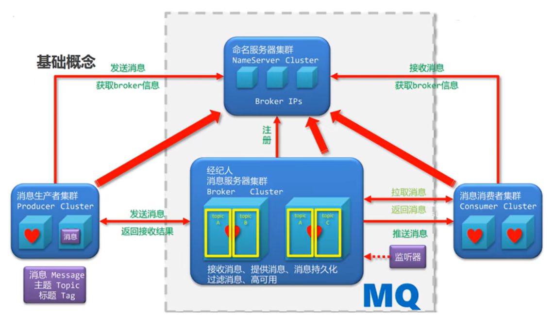 - Broker:Broker是 RocketMQ的消息代理服务器,负责接收、处理和存储消息。