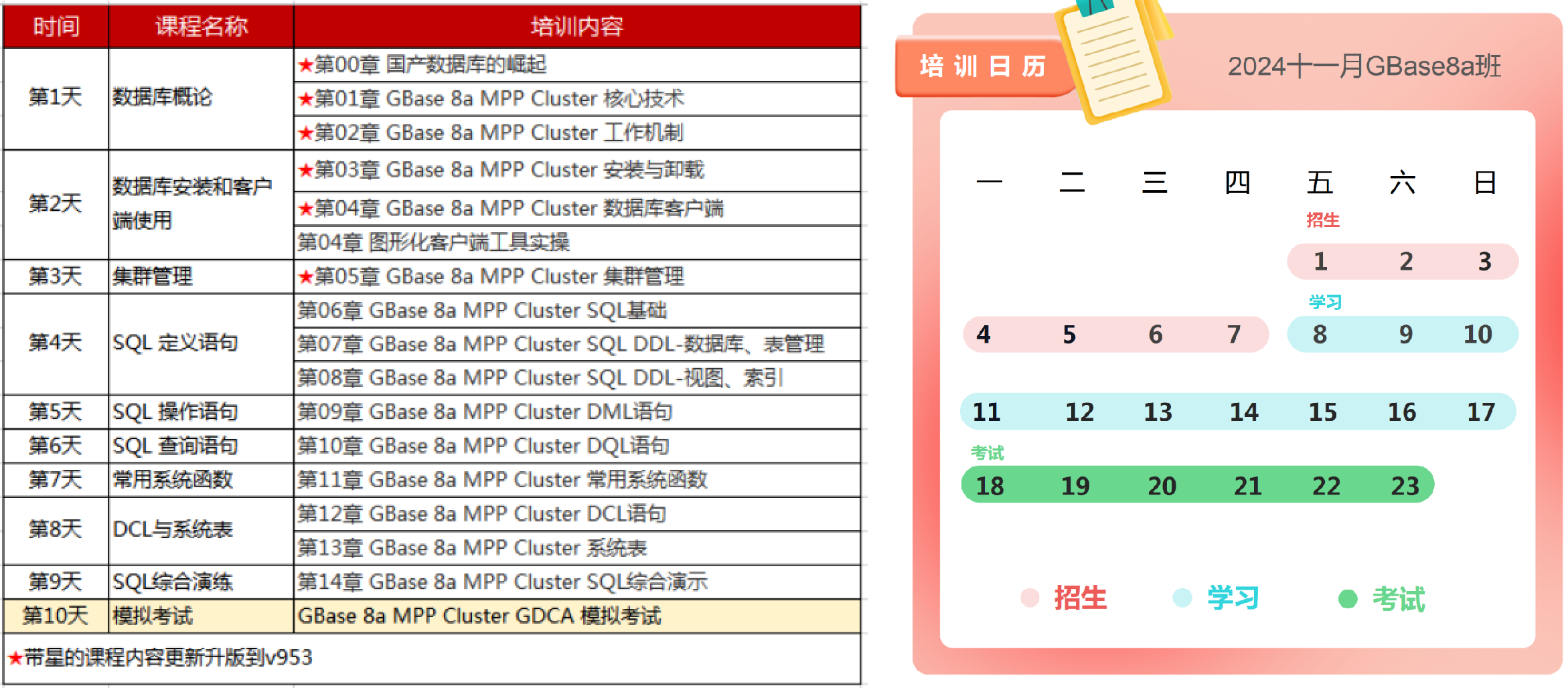 最近 2024 年十一月 GBase 8a MPP Cluster 认证培训 活动开始了,今天正式开课,现在报名还不晚,免费学习考证。