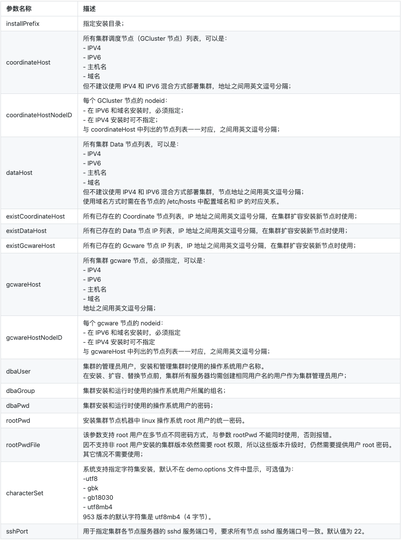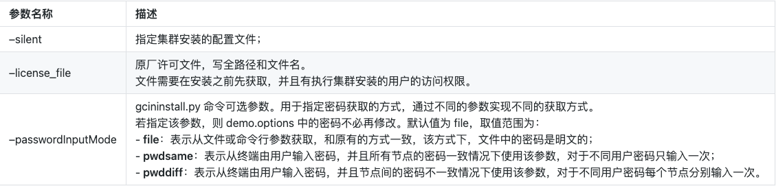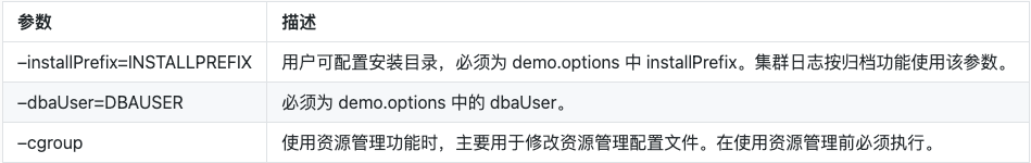 SetSysEnv.py 语法说明 python SetSysEnv.py --dbaUser=* --installPrefix=* [--cgroup]: