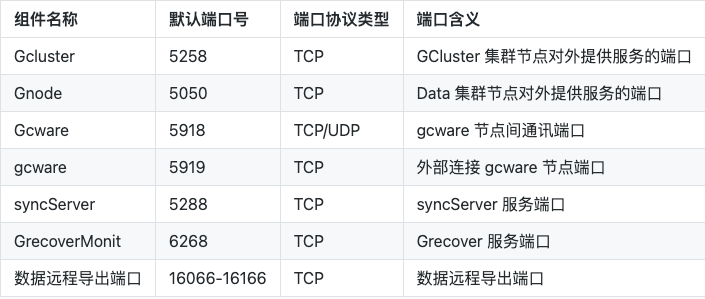 GBase 8a MPP Cluster 各服务使用的默认端口如下: