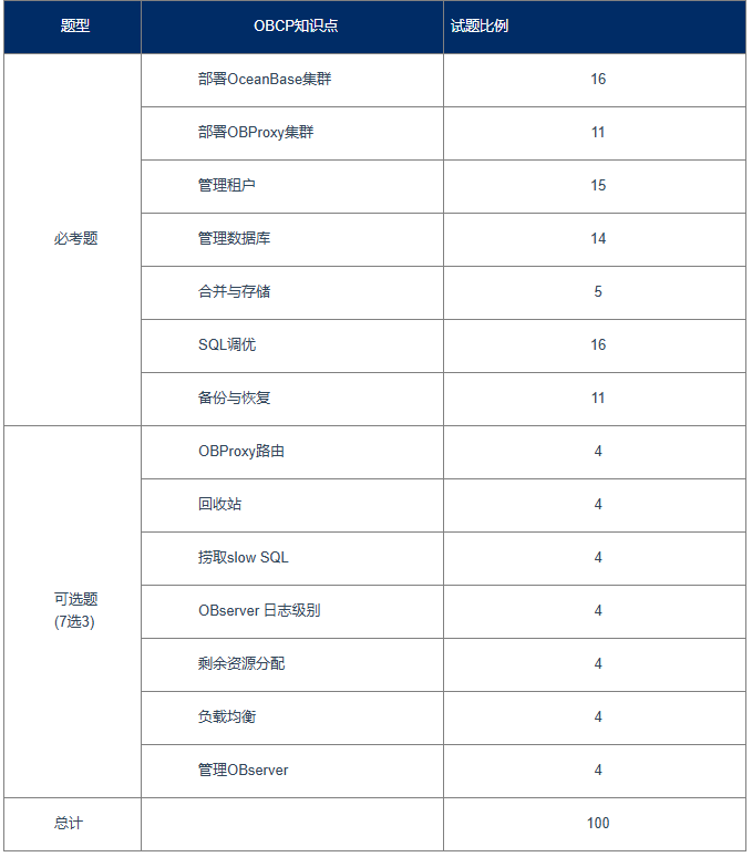 以下是OBCP V3.0 笔试考试的知识点分布: