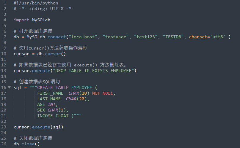 在TESTDB数据库中您已经创建了表 EMPLOYEE;