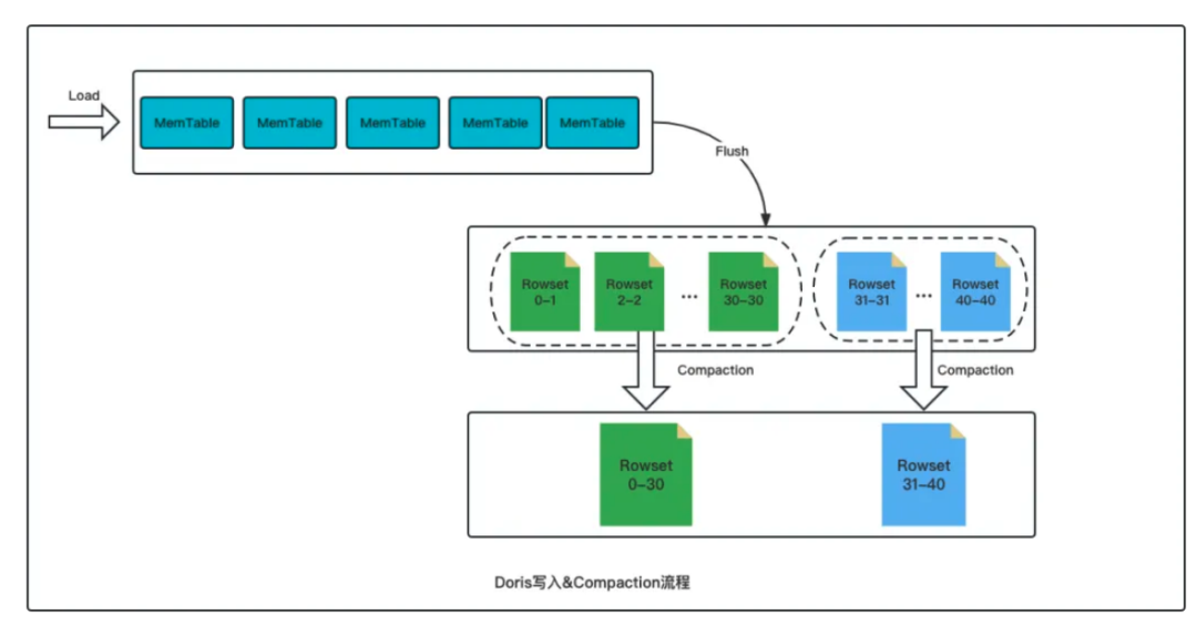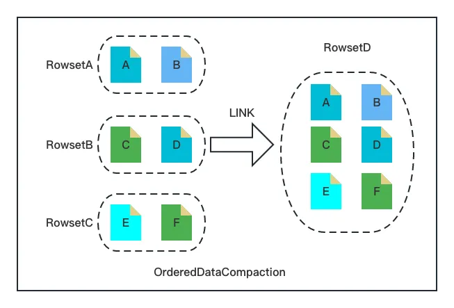 每个 Rowset 内的数据是按主键有序的,但 Rowset 与 Rowset 之间数据是无序的,Compaction 会将多个 Rowset 的数据从无序变为有序,提升数据在读取时的效率;