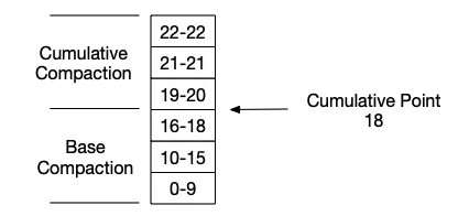 CC 任务还有一个重要步骤,就是在合并任务结束后,设置新的 Cumulative Point。CC 任务合并完成后,会产生一个合并后的新的数据版本,而我们要做的就是判断这个新的数据版是 “晋升” 到 BC 任务区,还是依然保留在 CC 任务区。举个例子: