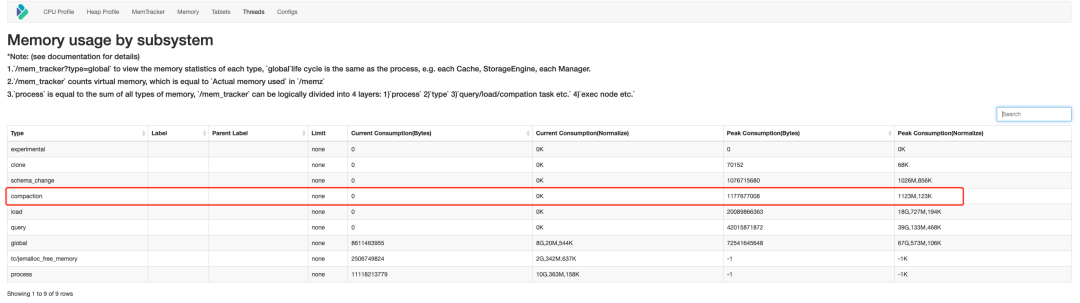 通过上面的链接可以查看当前Compaction的内存开销和历史峰值开销: