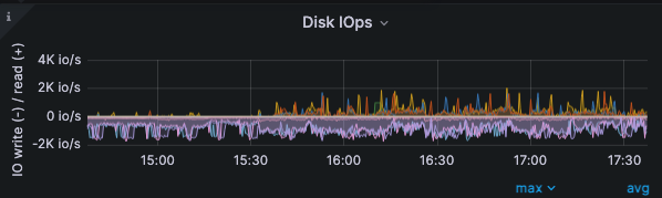而对于 IO 操作,目前还没有提供单独的 Compaction 操作的 IO 监控,我们只能根据集群整体的 IO 利用率情况来做判断。通过自建的监控页面查看: