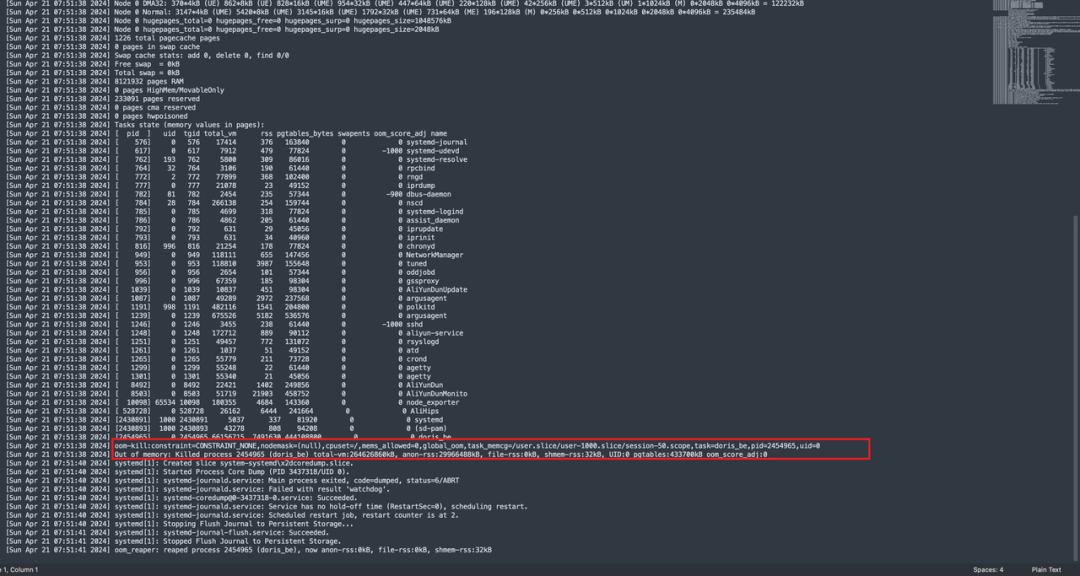 1. BE 出现宕机,且已经通过 dmesg -T 确定是OOM