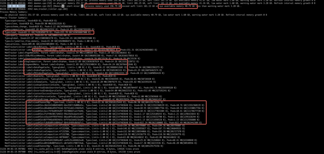 内存中 导入69G,其中 LoadChannelMgr 33G