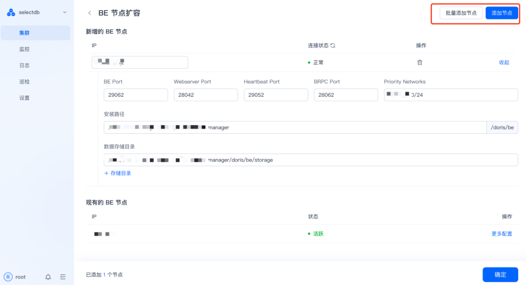 可以单独扩容一个节点、也可以选择【批量添加节点】,之后直接点点即可。