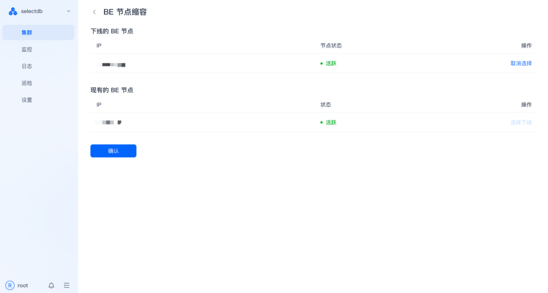 确定需要下线缩容的BE节点【选择下线】,之后直接点点即可。