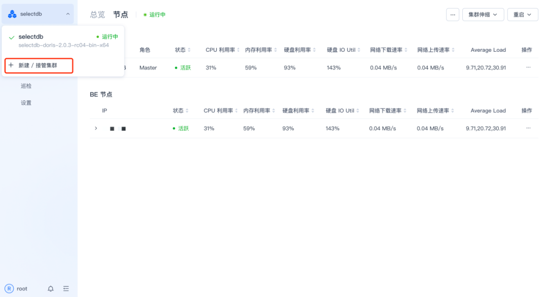 Manager支持同时管理多套集群。在已有一套集群的情况下,可以继续新建集群或者接管现有集群。本次以接管集群为例,接管现有的Doris 2.0.2集群。