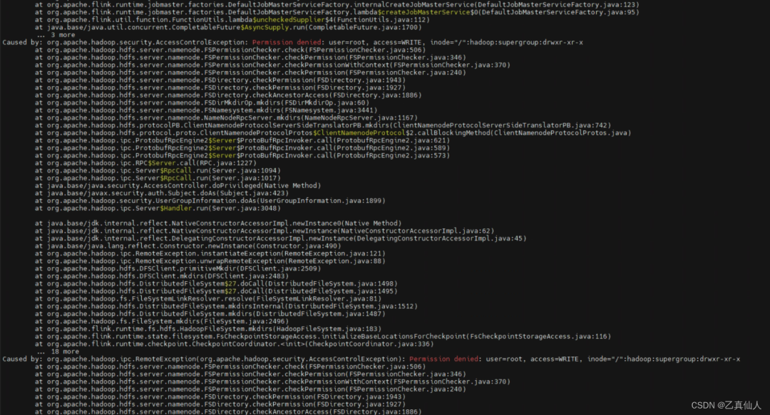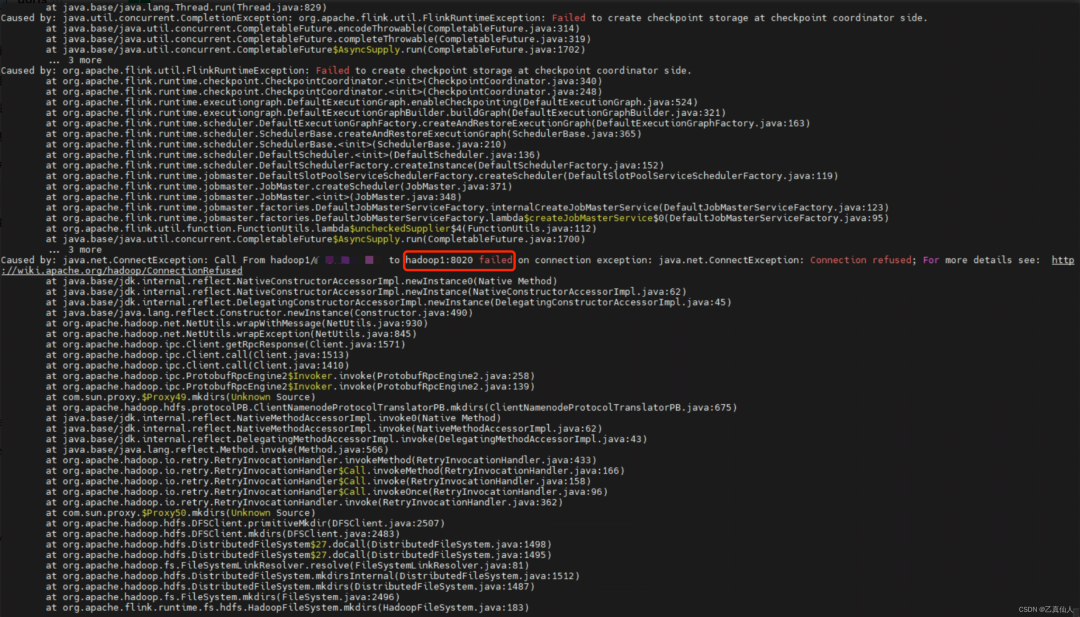 使用hadoop作为checkpoint时报如下异常: