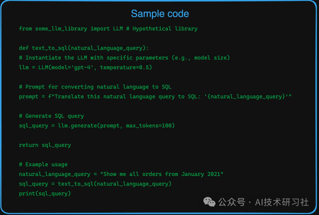 与语言模型集成:将AI语言模型与SQL数据库结合,实现自然语言输入的自动SQL查询生成,并将结果解释给用户。
