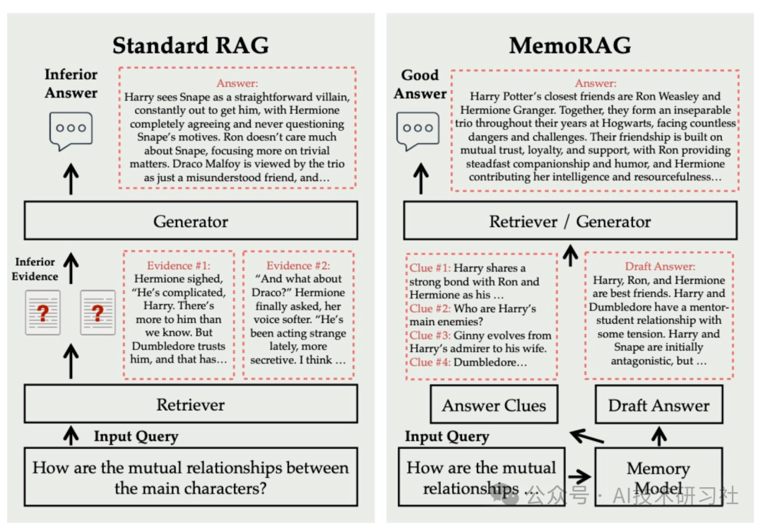 MemoRAG 是一个创新的 RAG 框架,建立在高效、超长的内存模型之上。与主要处理具有明确信息需求的查询的标准 RAG 不同,MemoRAG 利用其内存模型来实现对整个数据库的全局理解。通过从记忆中调用特定于查询的线索,MemoRAG 增强了证据检索,从而生成更准确且上下文更丰富的响应。