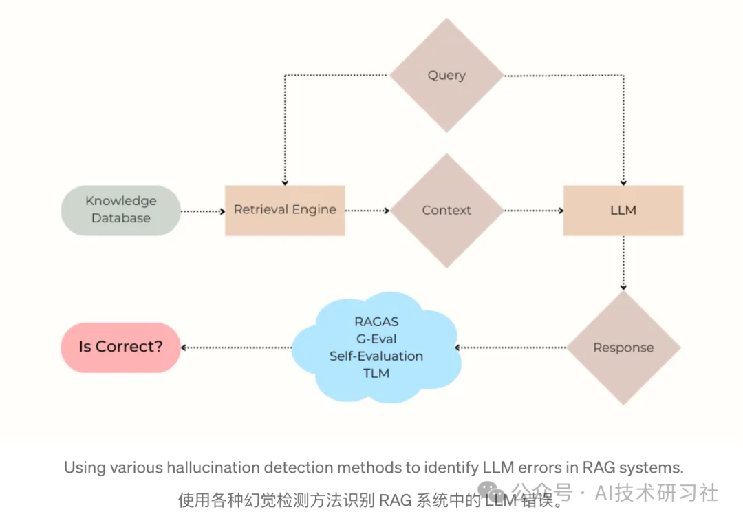 假设现有的检索系统已经获取了与用户问题最相关的上下文,我们会考虑使用算法来检测何时不应信任基于此上下文生成的 LLM 响应。这种幻觉检测算法在医学、法律或金融领域的高风险应用中至关重要。
