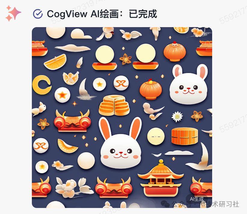 例如,中秋节快到了,使用CogView-3-Plus模型生成中秋主题的图案和表情: