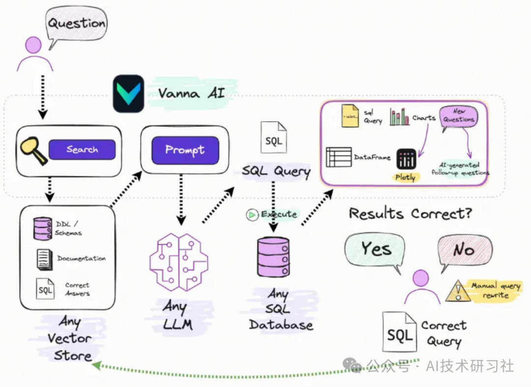 持续学习:随着时间的推移,Vanna 通过不断学习和修正,增强了对数据库架构的理解,提高了问题解答的准确率。