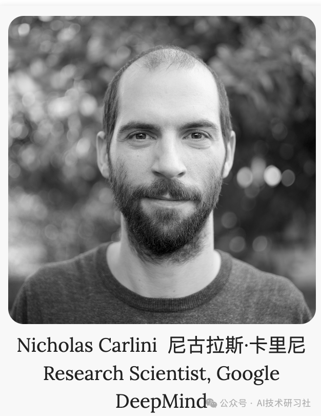 尼古拉斯·卡里尼Google DeepMind(以前在 Google Brain)的一名研究科学家,在机器学习和计算机安全的交叉领域工作。我最近的工作是从对抗的角度研究神经网络的特性。我于 2018 年获得加州大学伯克利分校的博士学位,并于 2013 年获得计算机科学和数学学士学位(同样来自加州大学伯克利分校)。