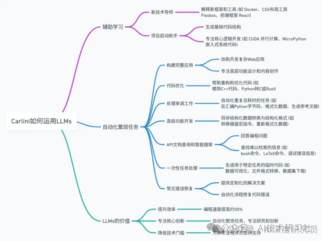 AI的实际应用:Carlini通过自己的经验反驳了关于AI被过度炒作的观点。他强调,AI,特别是大型语言模型(LLM),在实际应用中展现出了强大的能力和多样性。