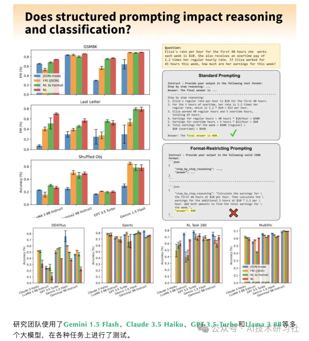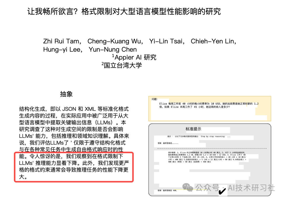 然而,最近一群研究人员在一篇名为"Let Me Speak Freely"的论文中专门研究了结构化格式对AI性能的影响。结果显示,这些所谓的"规矩"可能正在限制AI的思考能力!