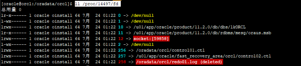 ln -s 258 /oradata/orcl/redo01.log